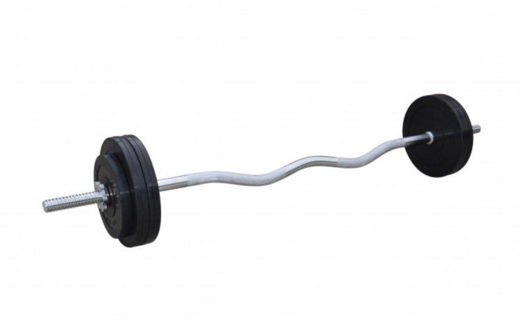 Штанга з обгумованими дисками W-подібна 30 кг Гантелі, гирі, штанги та диски металеві розбірні