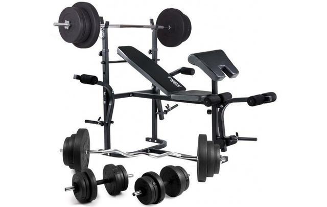 Лавка для жиму + 4 грифа + 85 кг дисків