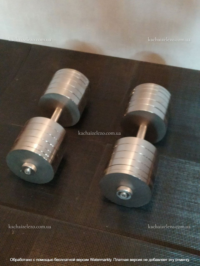 - На одну гантель одягається 6 по 10 кг, 2 по 5 кг, 2 по 4 кг, 2 по 3 кг, 2 по 2 кг